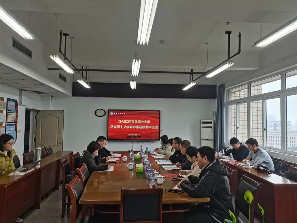 12月15日,青岛农业大学yl23411永利(集团)有限公司官网中国近现代史纲要教研室主任张广杰一行8人到访重庆工商大学yl23411永利(集团)有限公司官网,双方在慧智楼91210会议室开展教研交流。会议由重庆工商大学yl23411永利(集团)有限公司官网副书记、副院长洪富忠教授主持,两院纲要课骨干教师代表参会。
