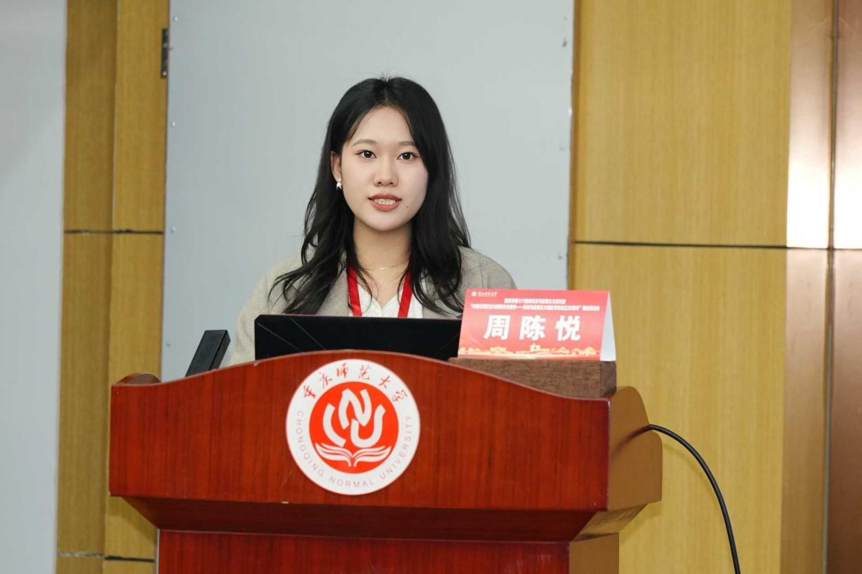 会上,我院学生代表周陈悦围绕“中国式现代化视域下文化主体性建设”这一主题,从选题背景、撰写思路、论文概述和总结启示四个方面作论文报告,并呼吁广大青年以文化为帆、以使命为舵,在中国式现代化的征程中,共同铸就属于这个时代的中华文化新辉煌。