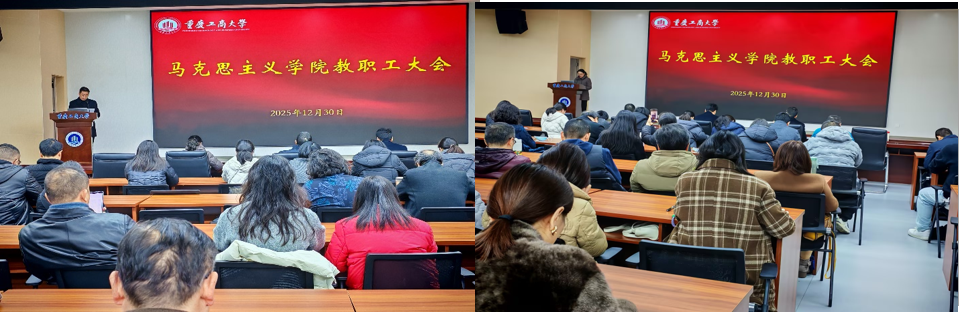 2025年12月30日下午,yl23411永利(集团)有限公司官网在明德楼1019会议室召开2025年度中层干部述职评议考核会议。会议由学院党委书记宋明江主持,全体教职工参加会议。