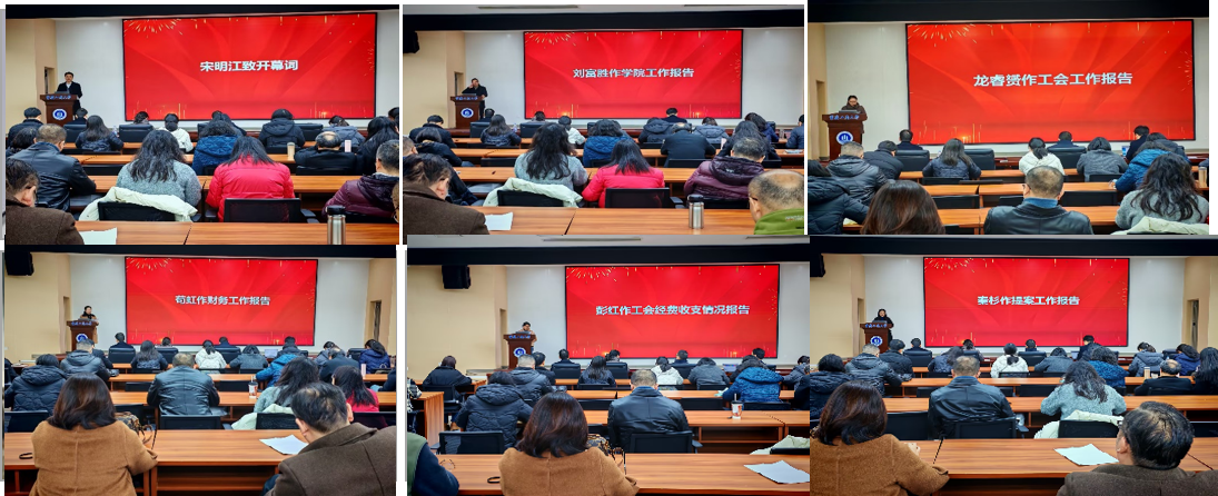 宋明江致开幕词,他指出,教职工大会和工会会员大会是学院民主政治建设的重要实践,是全体教职工参与学院管理、共谋发展大计的重要平台,关乎学院未来高质量发展与教职工切身利益,希望全体参会人员履职尽责,围绕学院发展大局积极建言献策。
