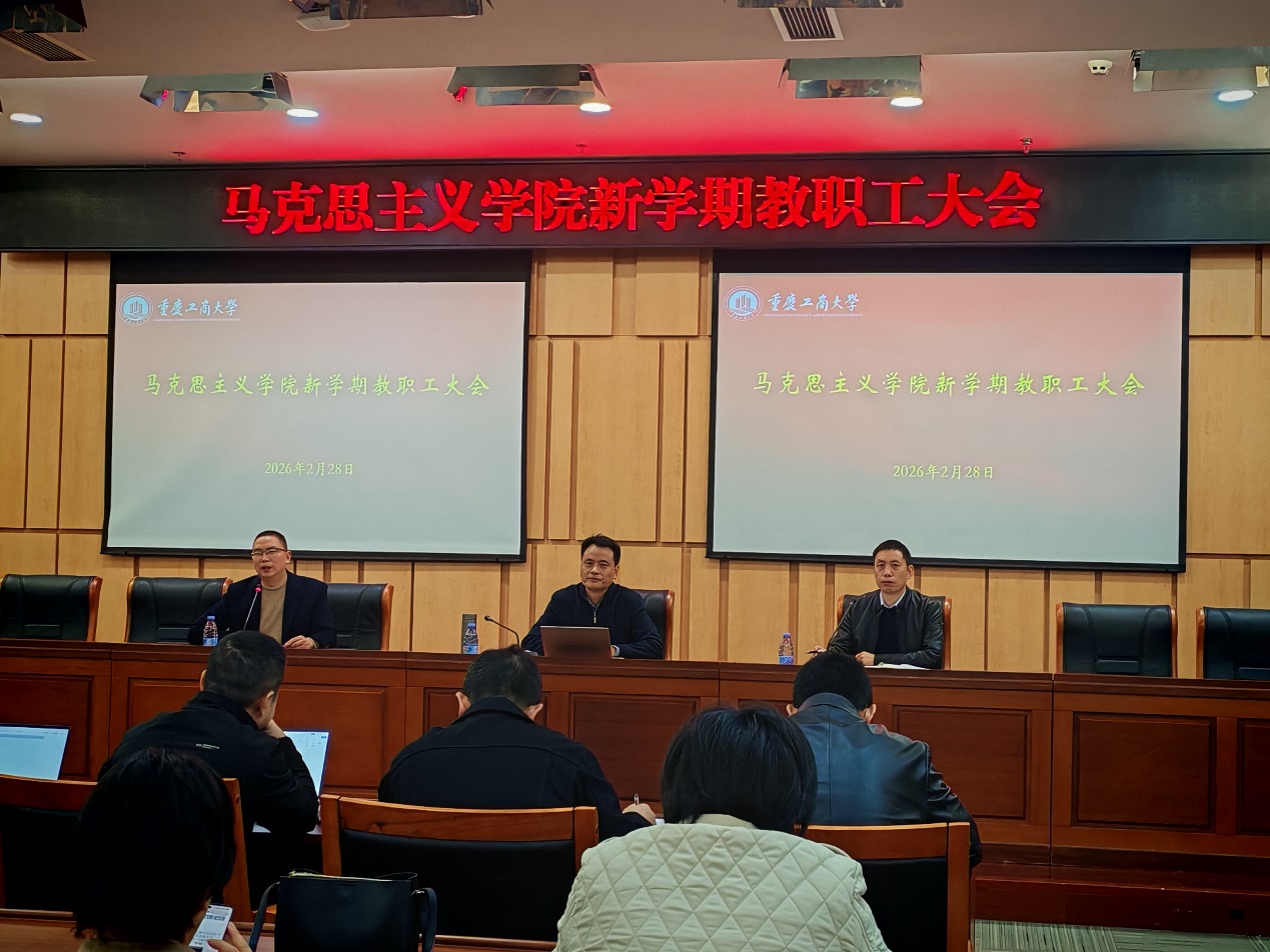 会上,学院党委副书记、院长刘富胜代表学院党政班子作工作汇报,全面回顾了寒假期间各项工作的推进落实情况,对过去一年学院马克思主义理论学科建设取得的显著成效给予充分肯定,向全体教职工的辛勤付出表示诚挚感谢。在新学期工作部署中,刘富胜明确了“新方案、新教改”与“数智赋能”两大核心工作方向,系统规划了本学期“四大建设”重点任务——课程建设、学科建设、制度建设、研究生培养和师资队伍建设,为学院新学期高质量发展划定了清晰路径、明确了具体抓手。
