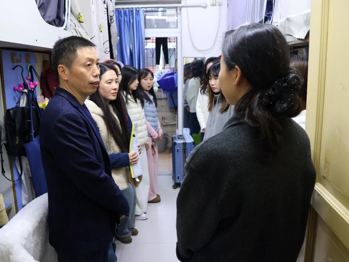 秦杉实地查看了学生宿舍环境与各项设施配备情况,关心同学们在生活起居、宿舍配套服务等方面的实际需求。她指出,学院正持续推进培养方案优化、奖学金评定细则完善和学科体系建设等各项工作,未来将进一步改善学生的学习生活条件,为同学们的学业发展提供更好保障。同时,她认真倾听并回应了学生的意见和建议,切实为同学们排忧解难。