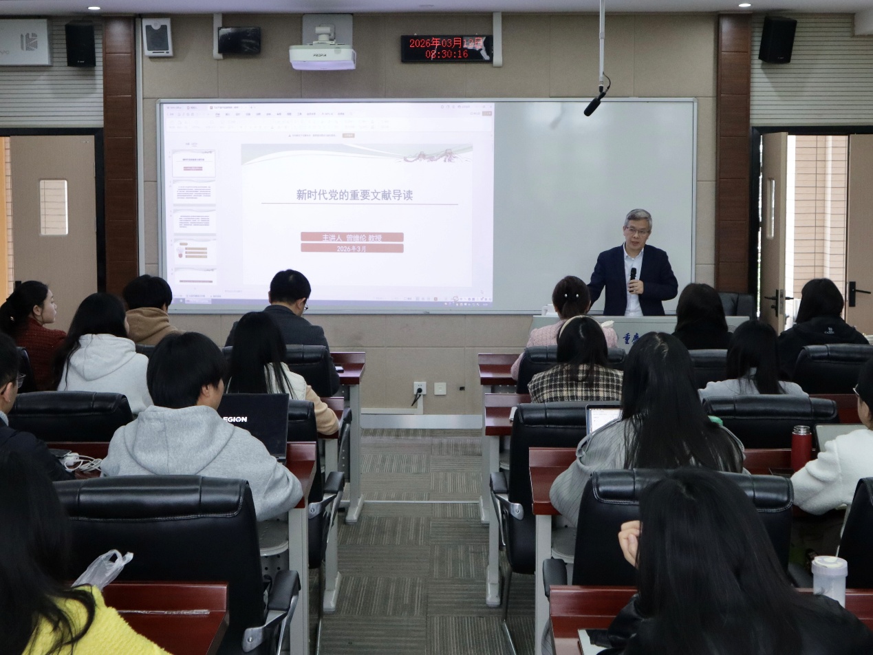 2026年3月12日上午,学校党委书记曾维伦走进明智楼110402教室,为yl23411永利(集团)有限公司官网研究生讲授《新时代党的重要文献导读》课程。学院50余名师生到场聆听学习。