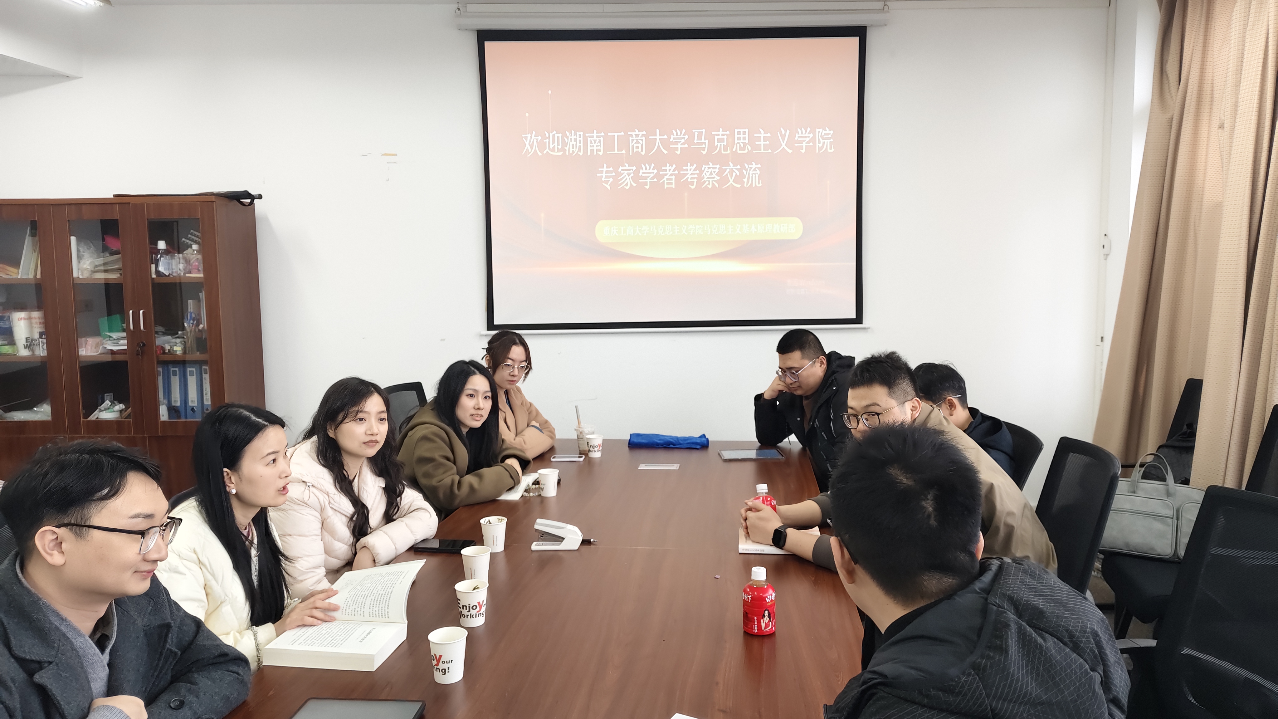3月15日,湖南工商大学yl23411永利(集团)有限公司官网师生莅临我院,与教工第一党支部开展党支部共建交流活动。双方以深化合作、互学互鉴为宗旨,围绕课程建设、教学比赛、支部活动建设等议题深入研讨,坦诚交流思政课教学改革、教师队伍建设及党支部工作创新等方面的经验做法,碰撞思想、凝聚共识,并就进一步推动两院在教学科研与党建工作协同发展达成积极意向。