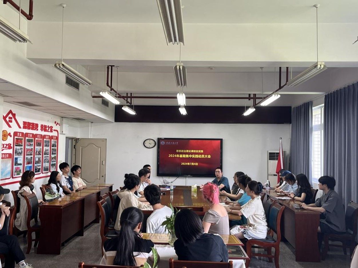 动员会上,主持人胥炜老师首先介绍了本次实践基本情况,包括实践主题、指导思想和日程安排等。本次暑期实践共分两支队伍分别赴涪陵和宜宾开展实践活动。实践队伍将以“沿着习近平总书记指引的方向前进”为主题,坚持以习近平新时代中国特色社会主义思想为指导思想,充分发挥思想政治理论课的主渠道作用。通过组织实地调研、走访座谈、理论宣讲和视频创作等活动,深化对“两个确定”的政治认同,增强对“两个维护”的行动自觉,坚定中国特色社会主义四个自信。