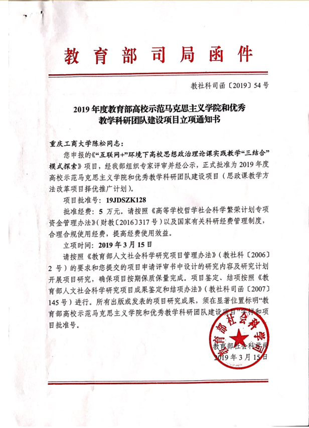 教育部思政课教学方法改革项目择优推广计划:“互联网”环境下高校思想政治理论课实践教学“三结合”模式探索(本成果申报人刘富胜、王仕勇、陈艳宇等)