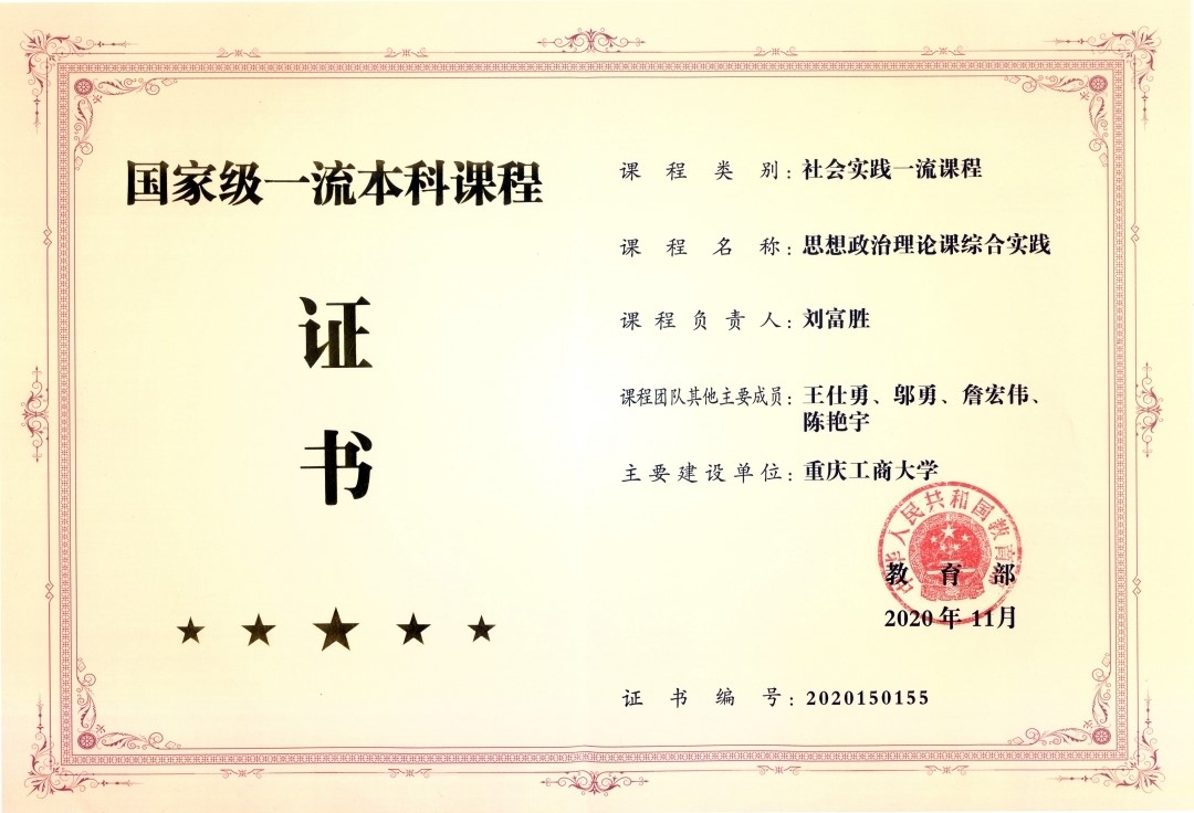 国家一流本科课程:思想政治理论课综合实践(本成果申报人刘富胜、王仕勇、邬勇、陈艳宇等)
