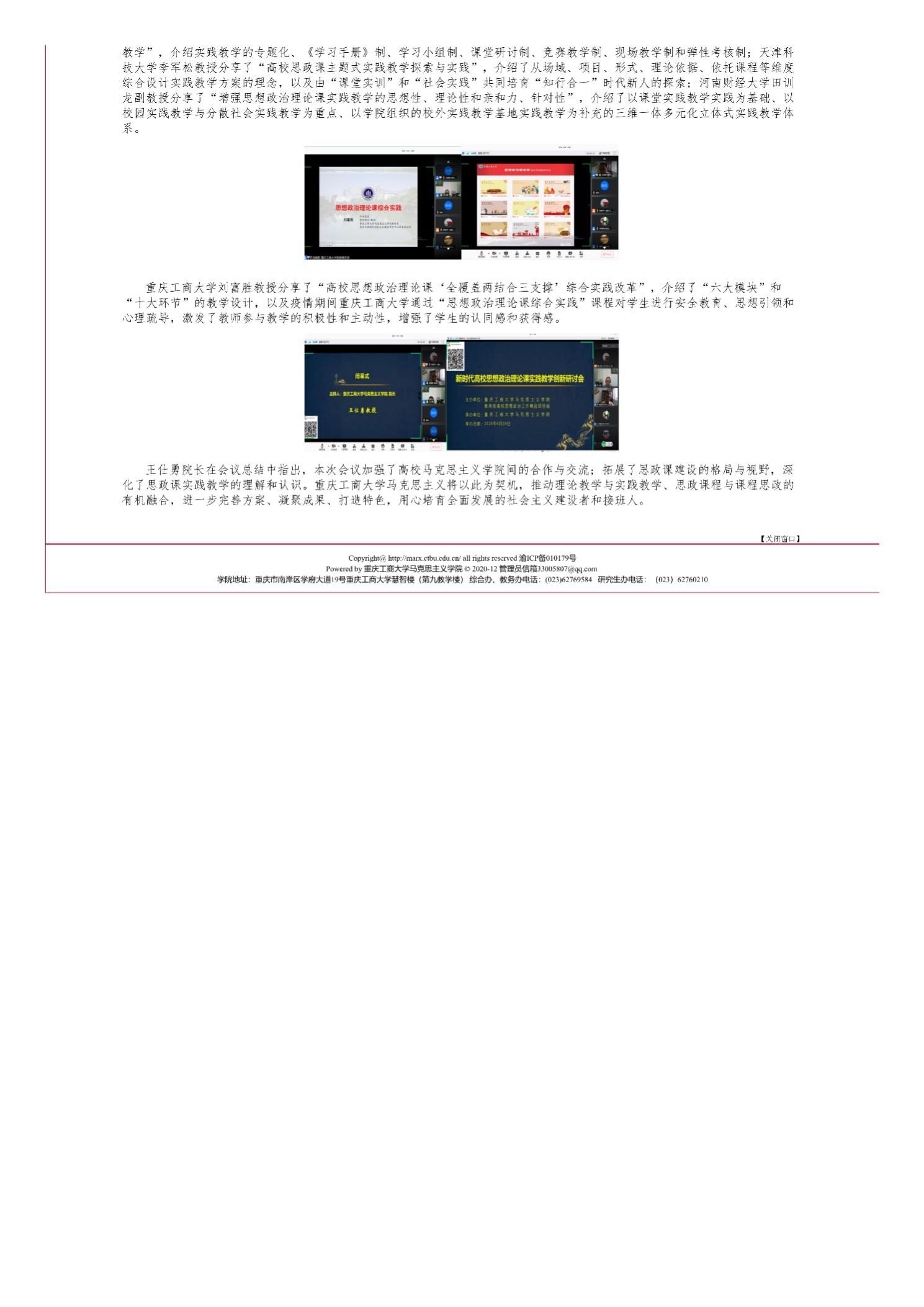 共享思政课实践教学经验 创新思政课实践教学模式——重庆工商大学主办“新时代高校思想政治理论课实践教学创新研讨会”