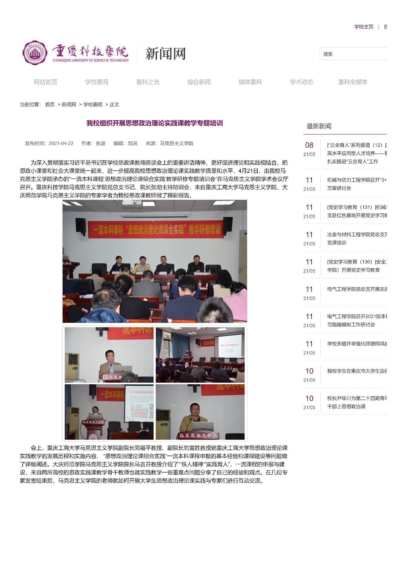 刘富胜、邬勇、陈艳宇、龙睿赟等到重庆科技学院开展思想政治理论实践课教学能力培训