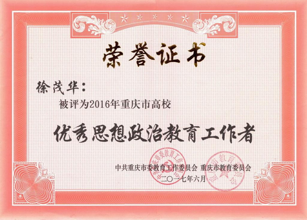 2016年重庆市高校高校优秀思想教育工作者