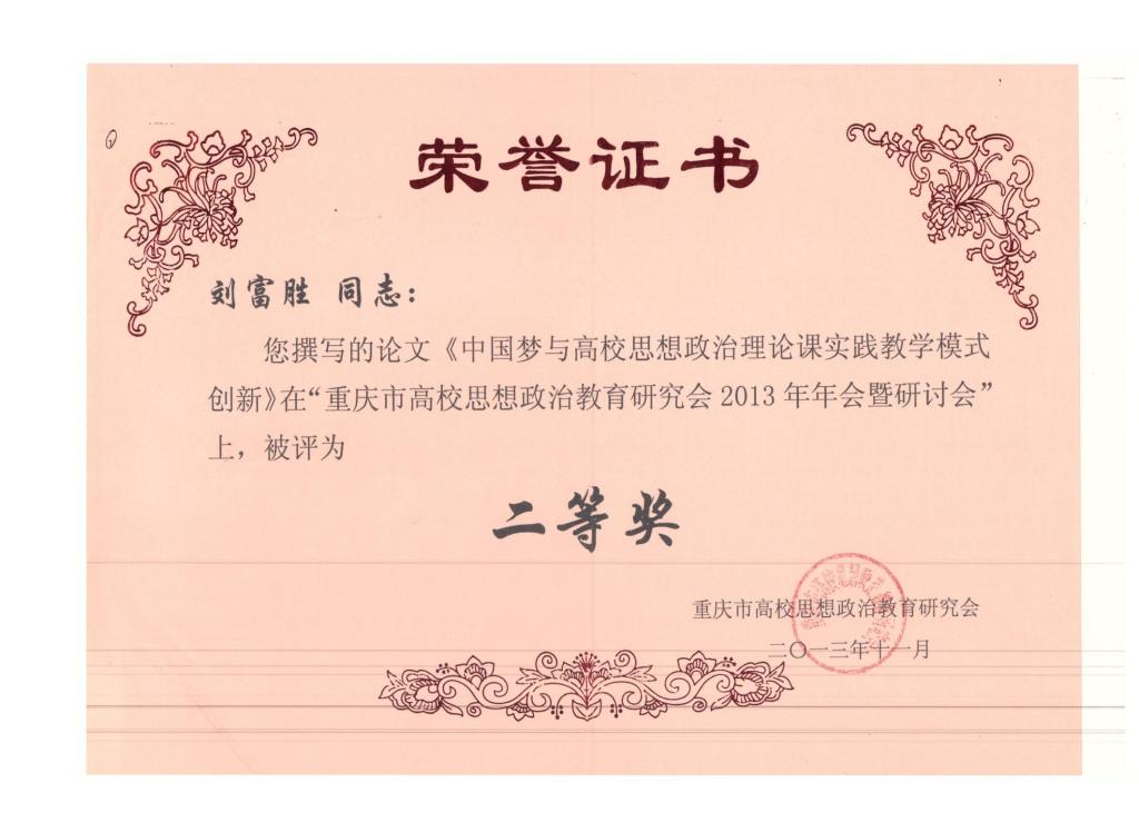 2013年重庆市高校思想政治教育研究二等奖