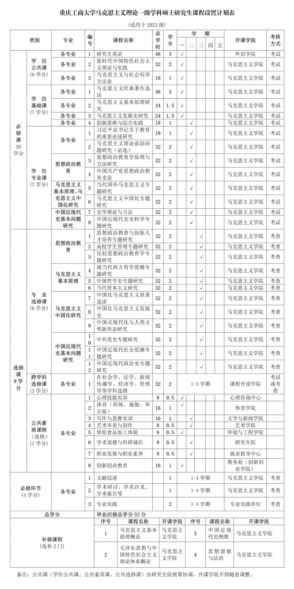 重庆工商大学马克思主义理论一级学科硕士研究生课程设置计划表(适用于2023级)