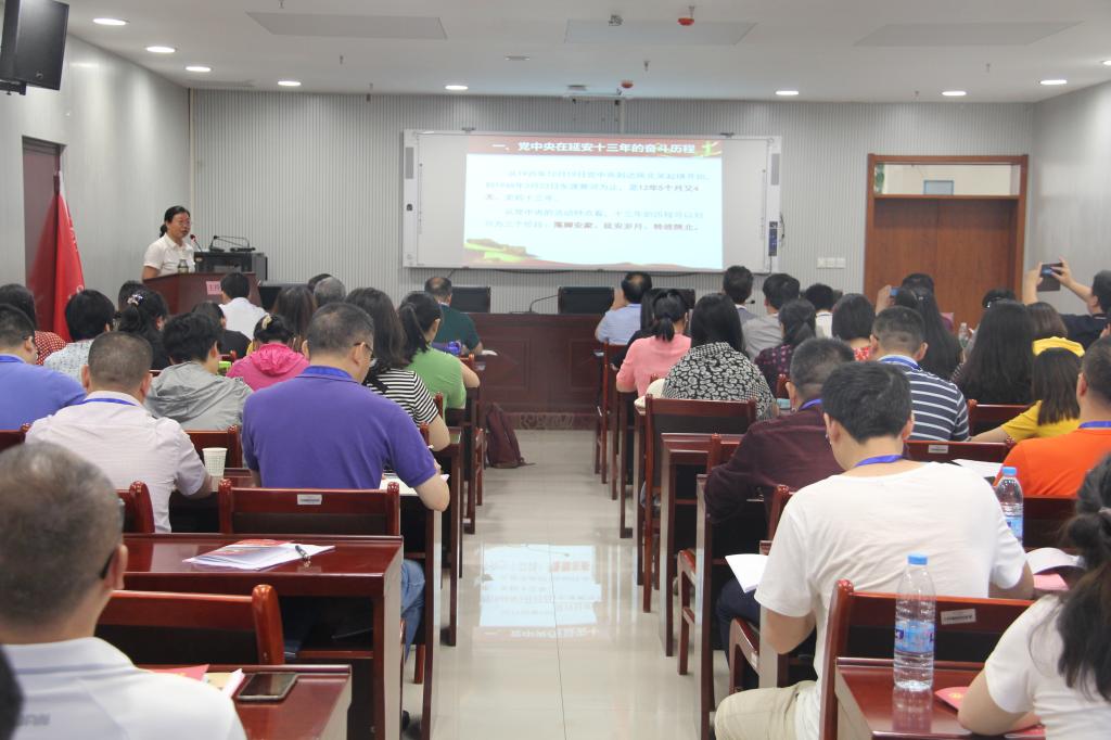 延安大学泽东干部学院惠晓峰教授作了题为《党中央在延安十三年》的专题讲座,就党中央在延安十三年的奋斗历程、辉煌业绩、经验启示进行了深入阐述和讲解,图文并茂、生动形象地介绍了党中央在延安十三年的峥嵘岁月和历史功绩,延安之所以成为举世闻名的中国革命圣地,党中央和毛泽东等老一辈革命家在这里生活战斗十三个春秋并领导了抗日战争和解放战争的密码在于:始终坚持实事求是的思想路线、勇于推进实践基础上的理论创新、始终保持党同人民群众的血肉联系、务必保持自力更生艰苦奋斗的优良传统,这是党中央在延安时期创造辉煌业绩的成功经验,对当代具有重要的启示意义。郝琦教授作了题为《延安精神及其时代价值》的专题报告,加深了老师们对延安精神的理解,它是延安时期以中国共产党为核心的中华民族优秀分子,在争取民族独立和人民解放的伟大斗争实践中的理想追求、精神风貌、思想品德、工作作风的精华与结晶。坚定正确的政治方向是延安精神的灵魂、解放思想实事求是的思想路线是延安精神的精髓、全心全意为人民服务是延安精神的根本、自力更生艰苦奋斗是延安精神最显著的标志。延安精神不仅在艰苦的革命岁月激励了千千万万中华儿女为革命胜利前赴后继,更是我们当下不忘初心、牢记使命主题教育必不可少的精神食量和实现中国梦的强大精神动力。