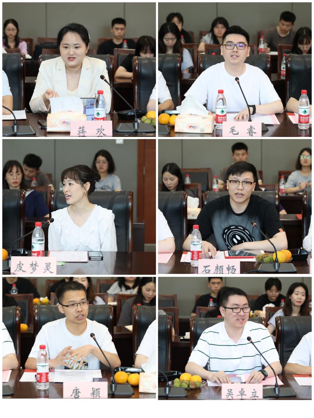 会上,毕业研究生皮梦灵、毛睿、唐颖、吴卓立、石颜畅、蒋欢先后交流论文写作、辅导员上岸、求学心路、求职、考博经验。皮梦灵认为毕业论文写作思想上要高度重视,要早做准备,要坚持每日写,要多与导师沟通交流,要放松心态认真写。唐颖叙述了自己三年研究生学习经验,他希望同学们要珍惜时间,树立理想;要勤学好问,致知通达;要躬身践履,砥砺芳华;要乘风破浪,勇往天涯;要大道之行,始于足下。石颜畅则认为要“把心向着伟大光荣正确的党,向着马克思主义,练就好马克思主义的看家本领,向着自己的研究方向,向着自己的赛道和人生方向。更为关键的是行有所为,要朝着明确的目标持之以恒地做着正确的事情。蒋欢在分享中将自己考博前的论文准备、与导师的沟通联系、笔试面试心路历程娓娓道来,她说:“在困难的时候,多哄哄自己,很庆幸自己生活在一个可以自由全面发展的新时代。”“岁月不居,时节如流。”在交流中,同学们畅言,研究生的三年时光稍纵即逝而又美好无限,他们希望每个yl23411永利(集团)有限公司官网的学生都能够永争上游,锐意进取,穷则善其身,达则济天下,在学习马克思主义的过程中能够内化于心,外化于行。他们感谢导师的指导和鼓励,感谢辅导员的帮助和守护,感谢所有老师的教诲与关怀,感谢学校学院的教育与培养。