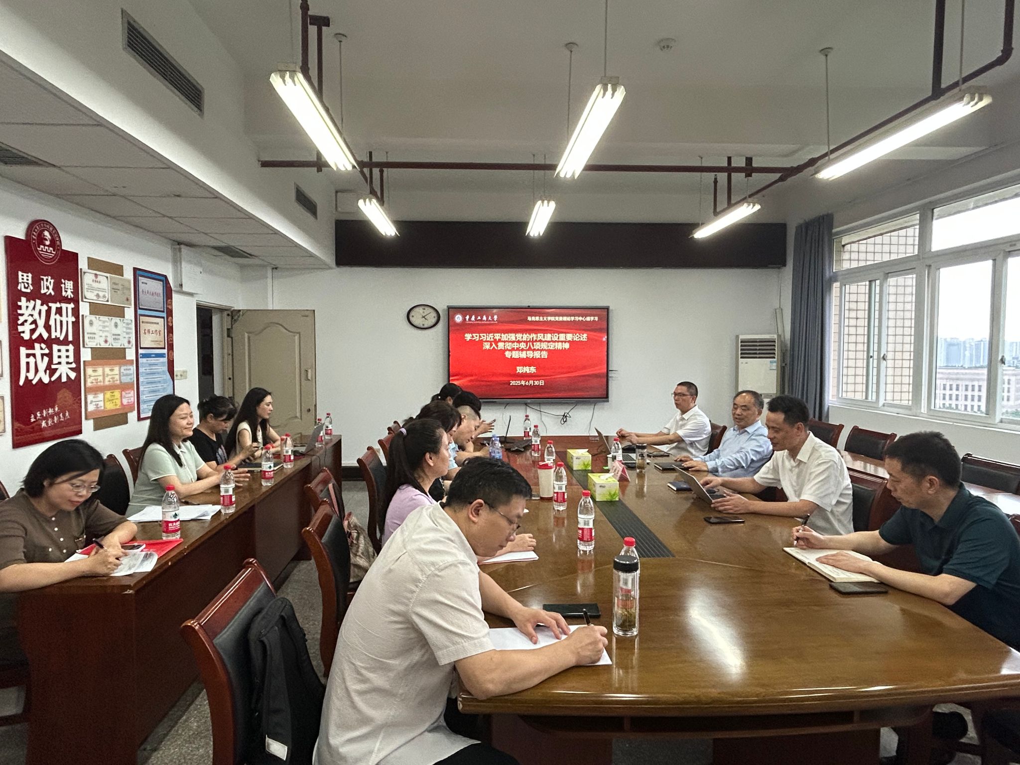 6月30日下午,yl23411永利(集团)有限公司官网党委理论学习中心组学习会暨第2期中央八项规定精神学习教育读书班在慧智楼 91210会议室举行。本次学习会由学院党委书记宋明江主持。党委理论学习中心组成员参加,各党支部书记、教研部主任、行政人员列席了会议。