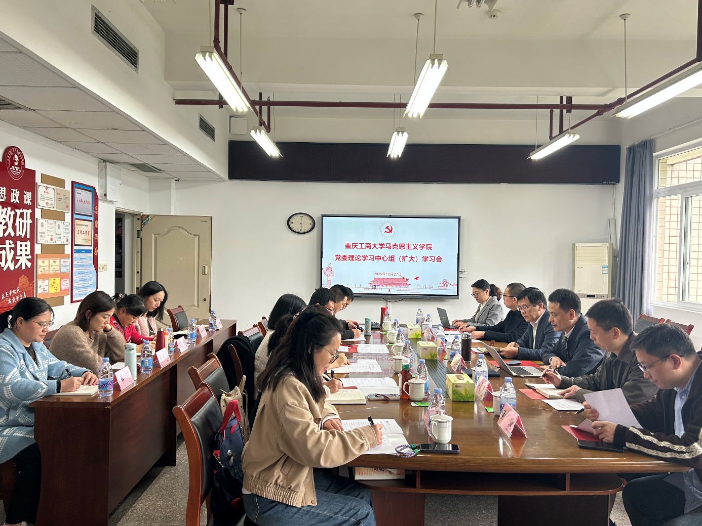 最后,宋明江作总结讲话,用“三个关键词”明确下一步工作方向,为学院落实全会精神搭建行动框架:一是“学深悟透”,既要以精读原文、细悟原理深化对党的二十届四中全会精神的理解,把握核心要义筑牢理论根基,又要结合马理论学科特色,将其与教材、教学结合,推动理论学习从“被动接受”转向“主动内化”,转化为解题武器。二是“科学谋划”,要以全会精神为指引,在高质量推进学院“十五五”规划编制过程中,同步统筹整合学校资源,将学科交叉研究纳入规划核心内容,确保规划既贴合国家战略方向,又具备学科融合的独特发展优势。三是“讲准讲活”,要将全会精神深度融入课程教学,把思政课讲深讲透讲生动,并通过专题宣讲、实践研学、参与“理响青年”活动等多样化形式,推动全会精神全面融入学院各方面工作。