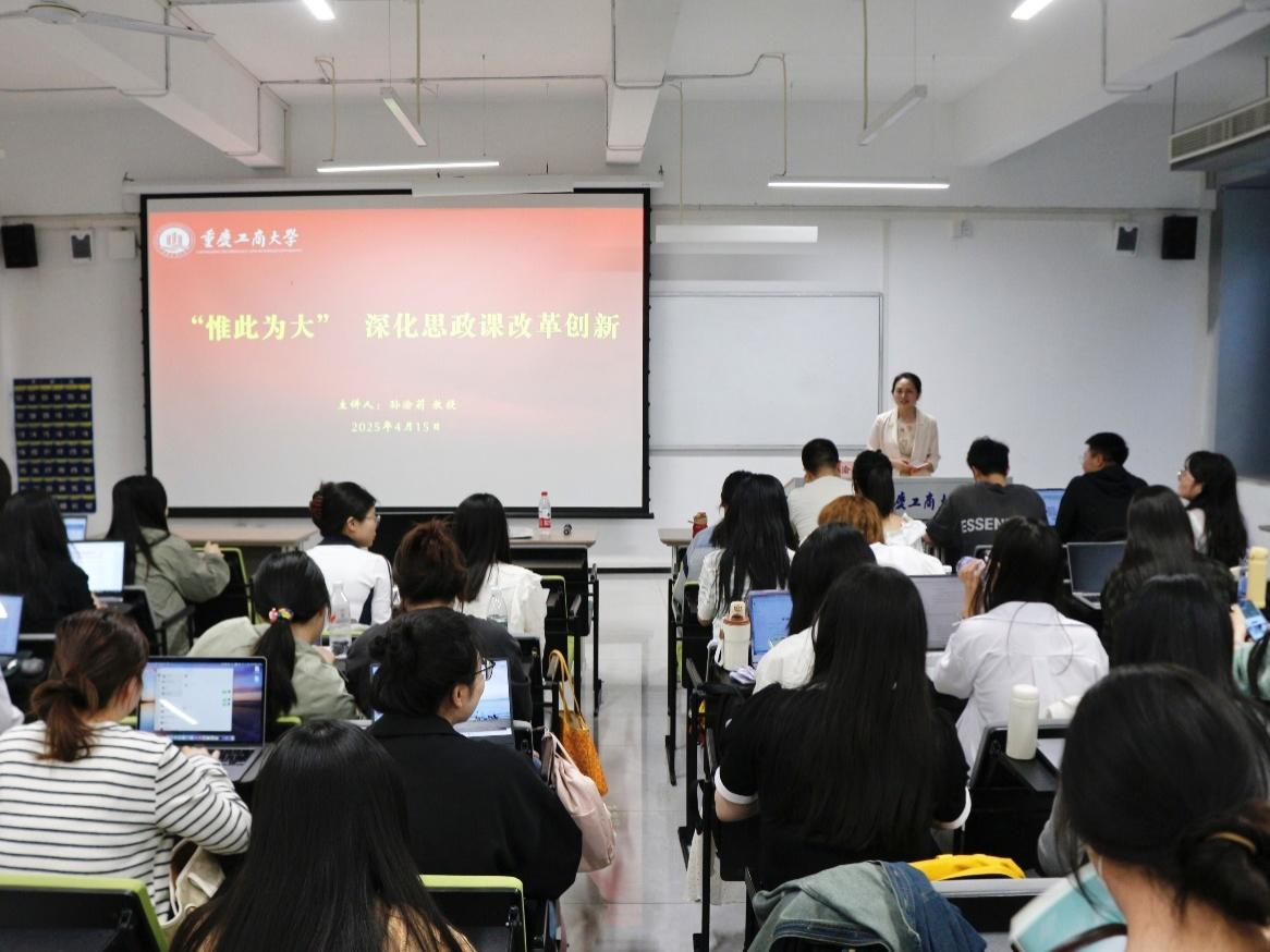 孙渝莉教授从形势与政策课程在思政课体系中的地位切入,引出本次讲座的主题“‘惟此为大’深化思政课改革创新”,并从三个方面作了深入浅出的阐述。一是“惟此为大”臻于使命担当,她表示,思政课建设基于一份传承、一个观点、一本书、一段历史,强调教育必须培养社会发展所需要的人,明确“培养什么人、怎样培养人”的核心问题;二是“惟此为大”基于“三观”锤炼,她指出,思政课建设需遵循思政教育规律与人才成长规律,构建科学的课程观、实践观和评价观;三是“惟此为大”成于久久为功,她表示,青年学生作为思政队伍的新鲜血液,要承担起育人使命,构建合格的思政教育队伍,共创思政课建设的美好未来。