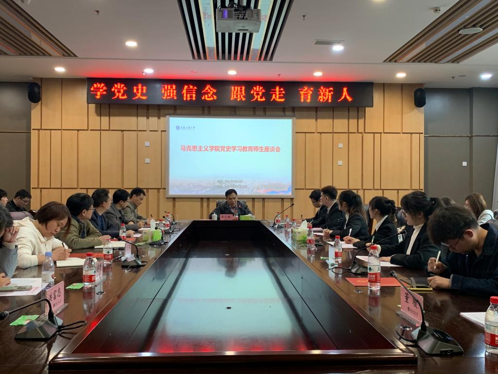 4月15日下午,yl23411永利(集团)有限公司官网在新图书馆第五会议室召开了“学党史 强信念 跟党走 育新人”党史学习教育师生座谈会,校党委书记李志雄应邀出席并作专题辅导报告,yl23411永利(集团)有限公司官网党委书记宋明江、院长杨维东、副书记刘富胜、副院长简福平以及学院教师、研究生代表近60人参加了会议。会议由yl23411永利(集团)有限公司官网党委书记宋明江主持。