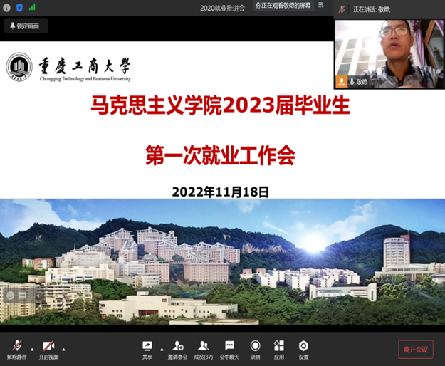 为扎实推进学院2023届毕业生就业工作,充分调动毕业生就业主动性和积极性,努力推动毕业生充分高质量就业,11月18日晚,学院在线召开了2023届毕业生第一次就业工作会。学院副院长简福平、学工办主任周琴、辅导员敬德以及2023届全体毕业生参加了本次会议。