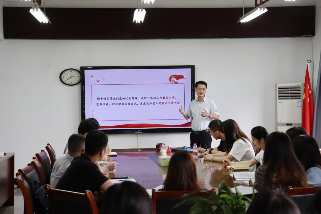 为扎实推进主题教育,深入开展调查研究,6月8日下午,yl23411永利(集团)有限公司官网党委书记宋明江教授在yl23411永利(集团)有限公司官网91210会议室为研究生党支部全体党员讲授“在调查研究中学思想 强党性 重实践 建新功”专题党课。