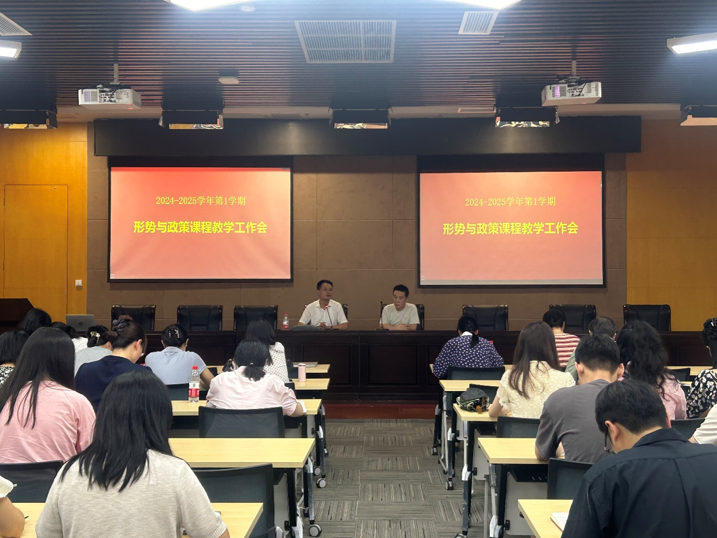 2024-2025学年第1学期形势与政策课程教学工作会暨集体备课会于2024年9月4日上午11点在图书馆多功能厅举行,来自yl23411永利(集团)有限公司官网、金融学院、经济学院等18个学院的全体专兼职教师出席了本次会议。会议由形势与政策教研部主任陈艳宇老师主持。